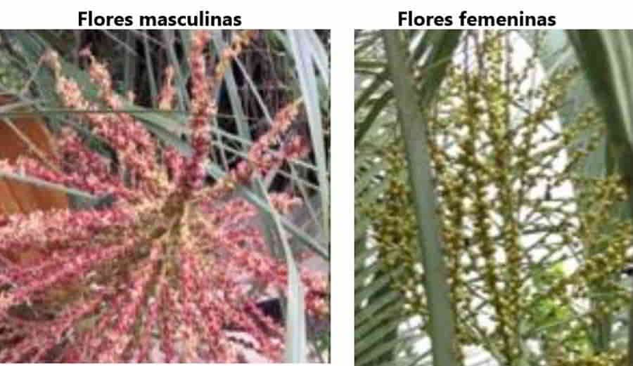 Flores masculinas y femeninas que miden 5-8 mm y 9-10 mm de largo, respectivamente, así como una espata, que se ensancha hacia el ápice y termina abruptamente en un pico corto. Tiene frutos pequeños ovoides, de 1,4-2,6 cm de longitud, de color amarillo, naranja, naranja-rojizo o rojo en su madurez y una semilla estrecha, ovoide, fusiforme o elíptica, de 1,35 cm de longitud