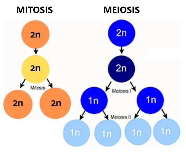 Meiosis-Mitosis: división celular. La principal diferencia entre los procesos de mitosis y meiosis viene determinada por la función que desempeña cada proceso, siendo la mitosis la división del núcleo de cualquier célula de un organismo (células somáticas), necesaria para el crecimiento y renovación de dichas células; mientras que la meiosis la llevan a cabo solo y exclusivamente las células implicadas en el proceso de reproducción, con el objetivo de intercambiar información genética entre los núcleos de dos células sexuales de diferente organismos y aumentar así la diversidad genética y supervivencia de las especies.